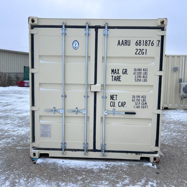 These 10′ containers are available with your choice of barn-style double doors or a roll-up door for added convenience. Barn doors provide a wide, fully open entry for loading larger items, while roll-up doors offer quick, easy access without requiring extra space to swing open. The standard exterior height is 8’6”, and the typical finish is RAL1015 Light Beige. Other colour options may be available depending on stock.